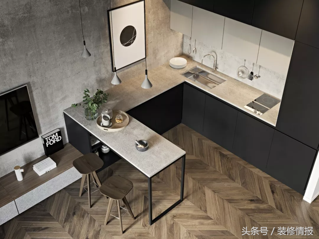 深色系颜色比较沉稳、贵气,可以适当选择深色的家具,会让人比较舒服。深色系的地板其实也很容易搭配成现代工业风,墙壁刷成深灰或黑色,使用铁艺、深色家具,你也可以拥有井柏然那样的家。