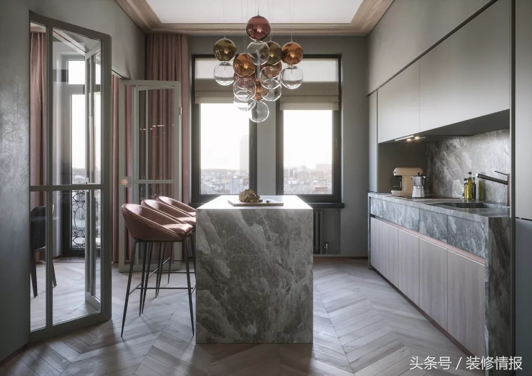 之前大火的井柏然的家,地板就是鱼骨拼接设计,灰色和原木色相间,与他家工业风的设计完美融合。