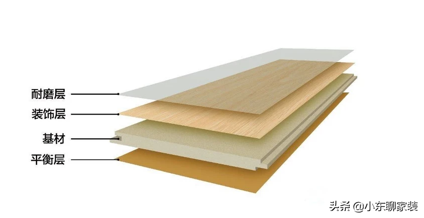 1、强化地板:也叫强化复合地板,俗称三纸一板。表面是耐磨纸,下面是花色纸,中间是热压的人造基材,就是密度板,最底层是平衡纸。