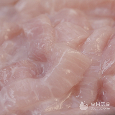 2、250克里脊肉切条,加盐、水淀粉,腌制10分钟;