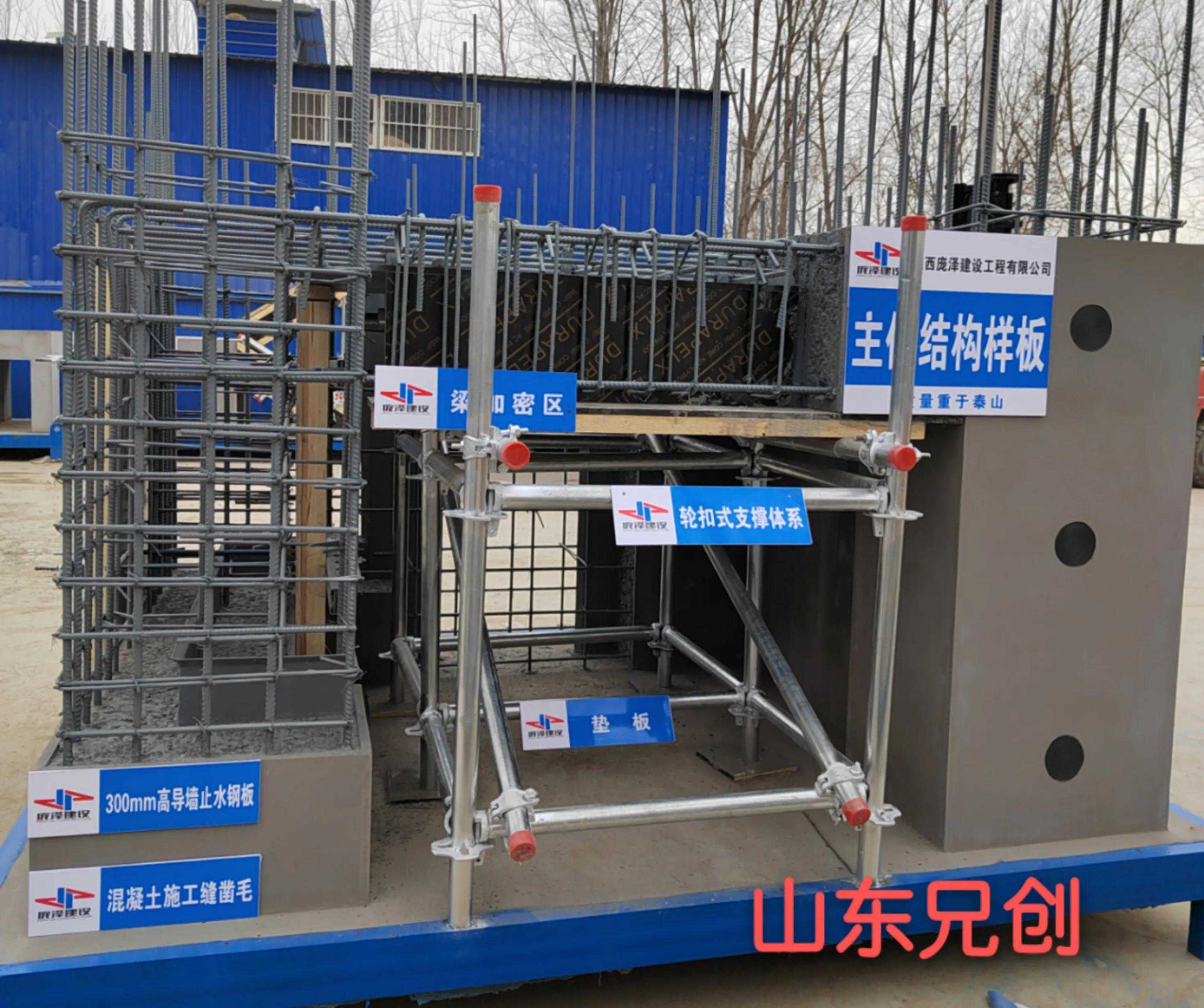 样板工艺包含:基础柱、基础底板钢筋绑扎、止水钢板、砼成型展示、混凝土施工缝凿毛、止水螺杆封堵(止水螺杆、打凿喇叭口、割除止水螺杆、涂刷防锈漆、防水砂浆封堵、刷JS防水涂料封堵)等工艺;