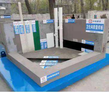 卫生间样板工艺:包含墙体砌筑、构造柱浇筑、整体墙面粉饰、根部C20素混凝土反坎200高、污水立管安装、透气管安装、等电位端子箱预埋、卫生间地面工序做法等工艺。
