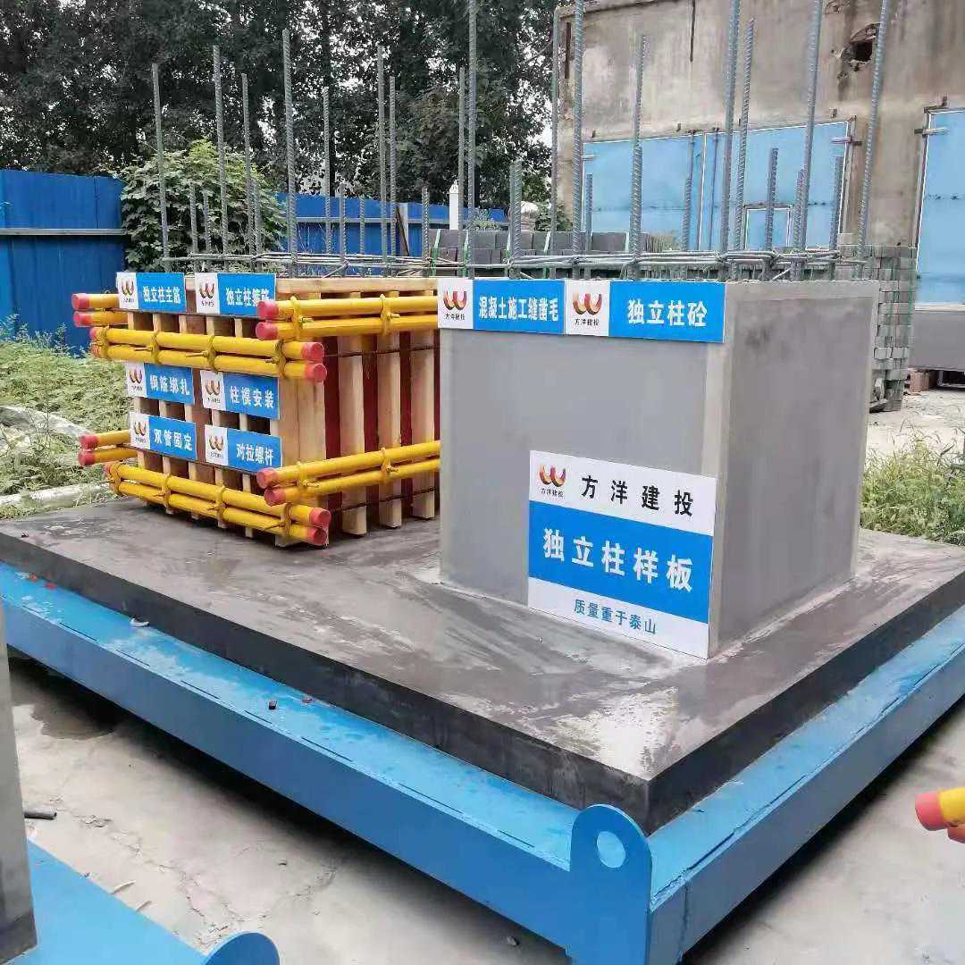 样板工艺包含:吊模支设、钢筋绑扎、支模、保护层垫块、独立柱砼成型等工艺