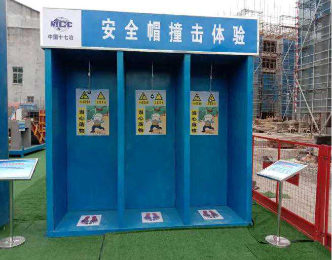 工地安全教育培训体验馆是施工作业人员通过亲身参与、体验,寓教于乐,让每个员工都有实际操作的动手能力,真正达到安全教育的目的。安全体验馆内一般配置体验馆安全门、安全带使用体验、洞口坠落体验、消防器材演示体验、安全帽撞击体验、综合用电体验、消防器材演示体验、平衡木体验、钢丝绳使用体验、安全防护用品展示培训、隧道坍塌逃生体验等数十种体验设施。这些基本涵盖了工地施工现场容易发生安全事