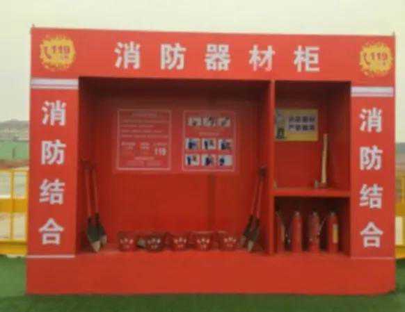 消防柜展示采用模板拼接。一般尺寸为3500*500*2300mm,可根据现场实际尺寸调节。2、消防柜展示包含各类灭火器材,灭火器、水桶、铁锹等.