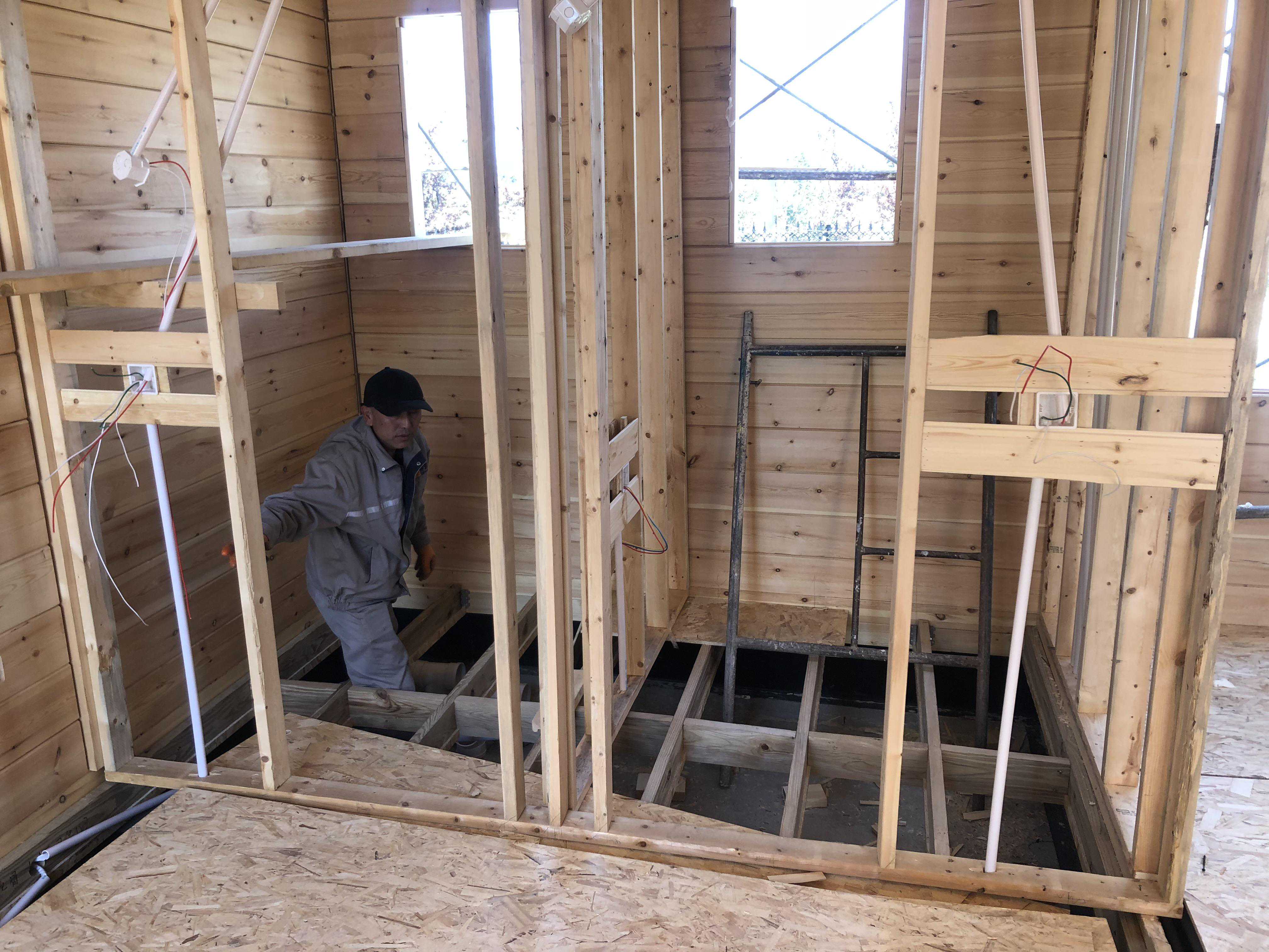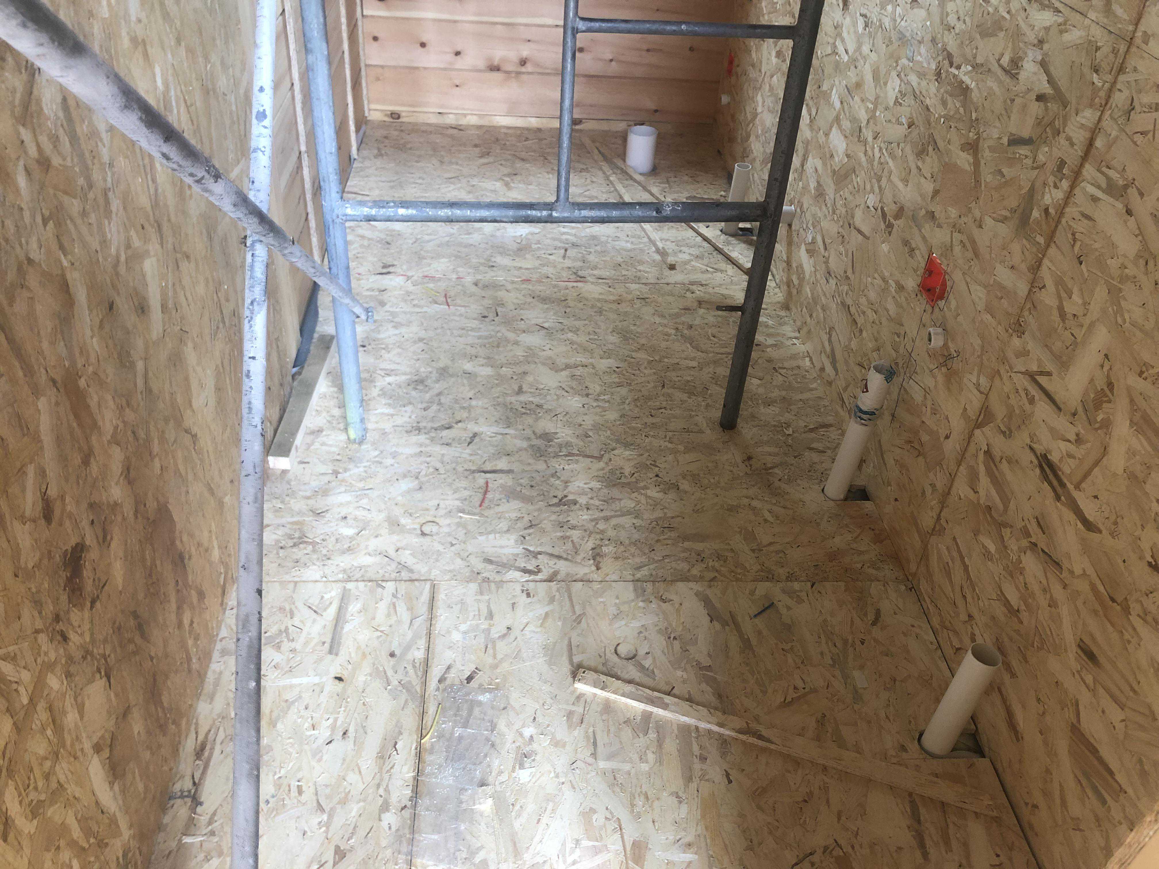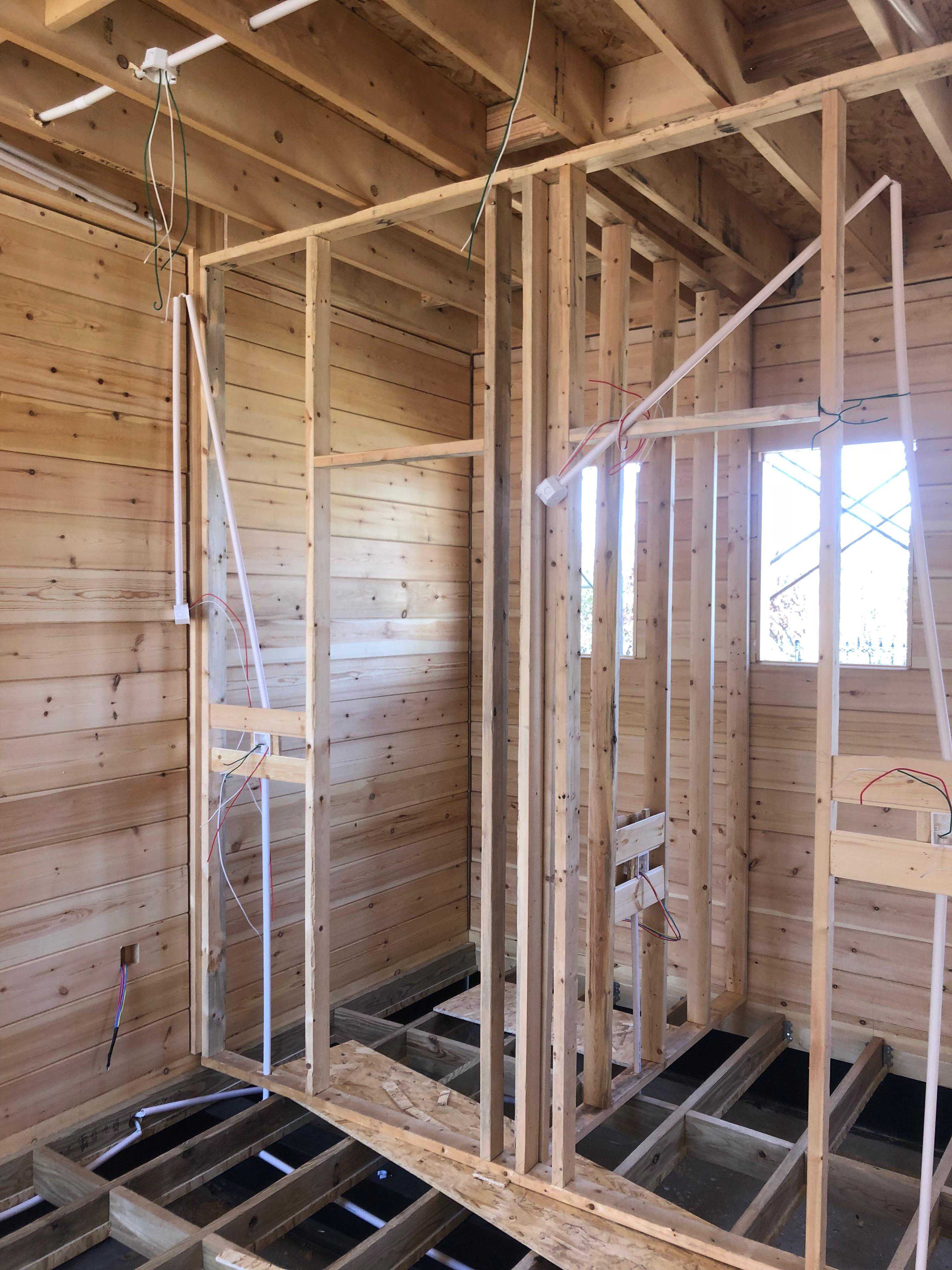 二楼卫生间完工,轻型墙体,外覆桑拿板