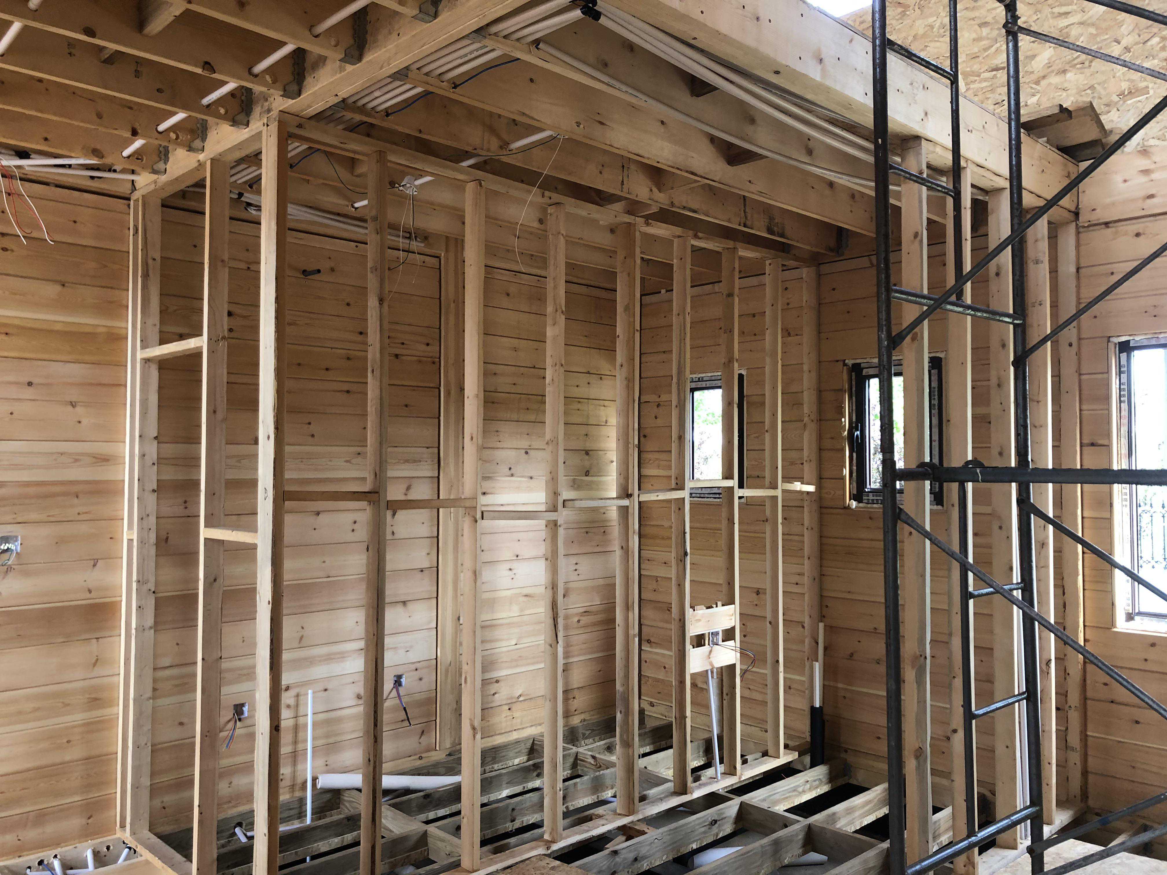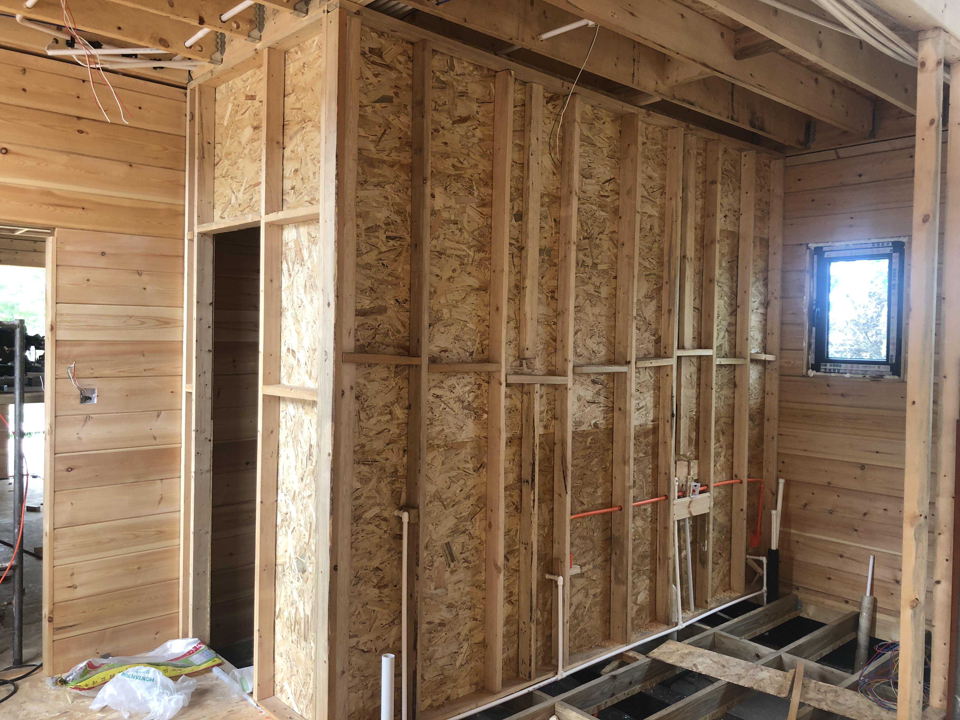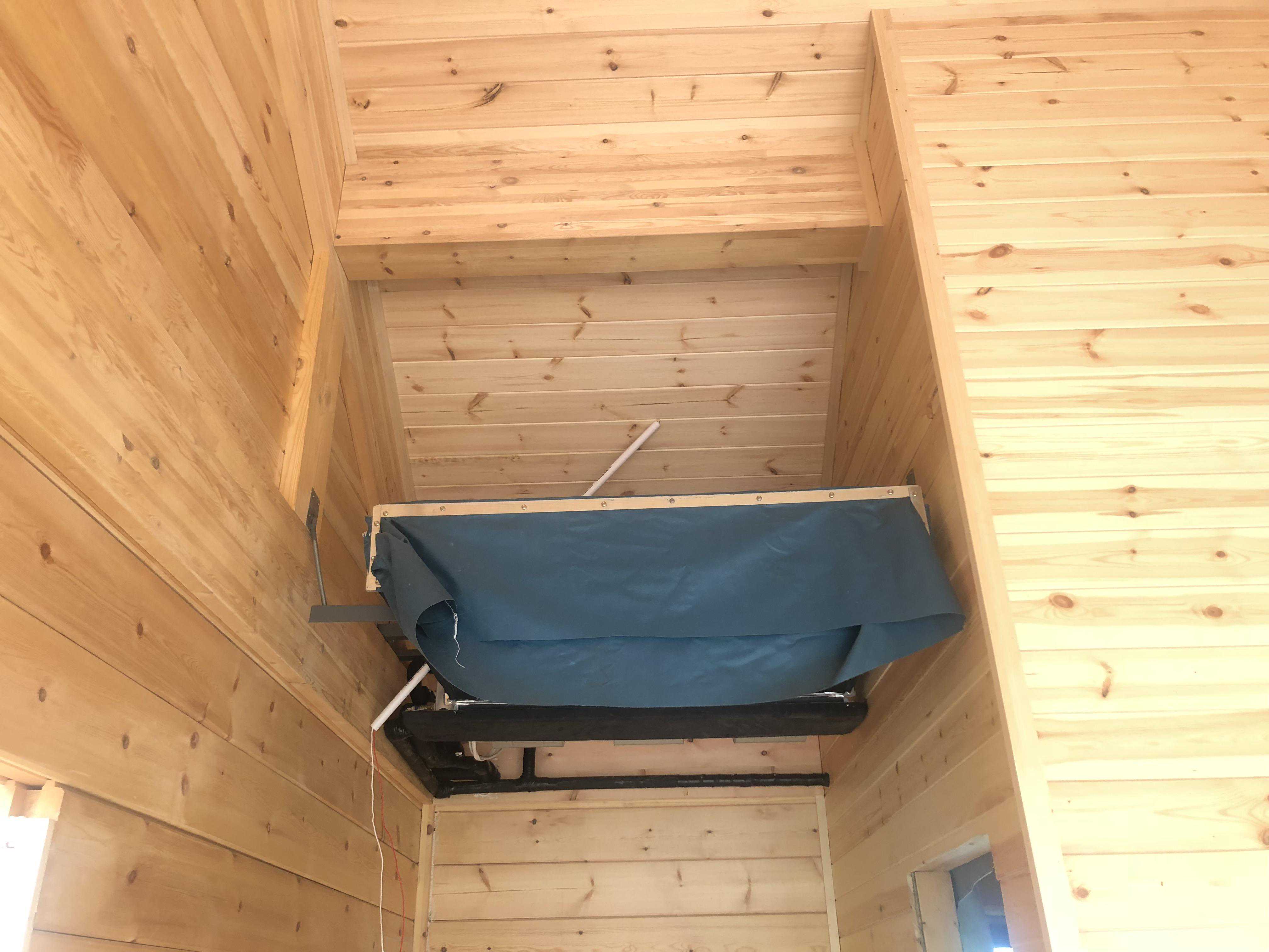二楼卫生间完工,轻型墙体,外覆桑拿板