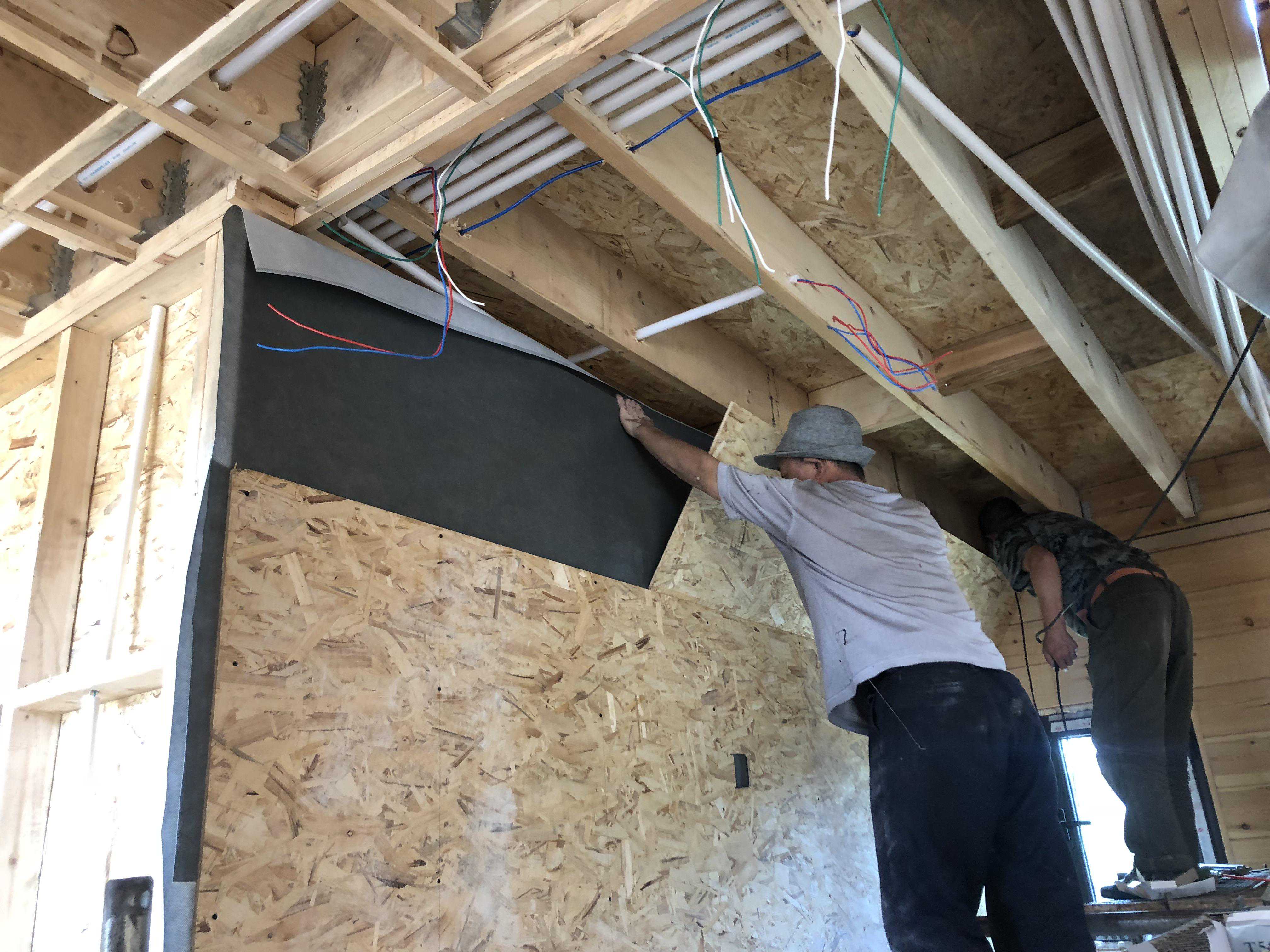 从上到下依次为结构板,呼吸纸,保温棉+龙骨,下层结构板