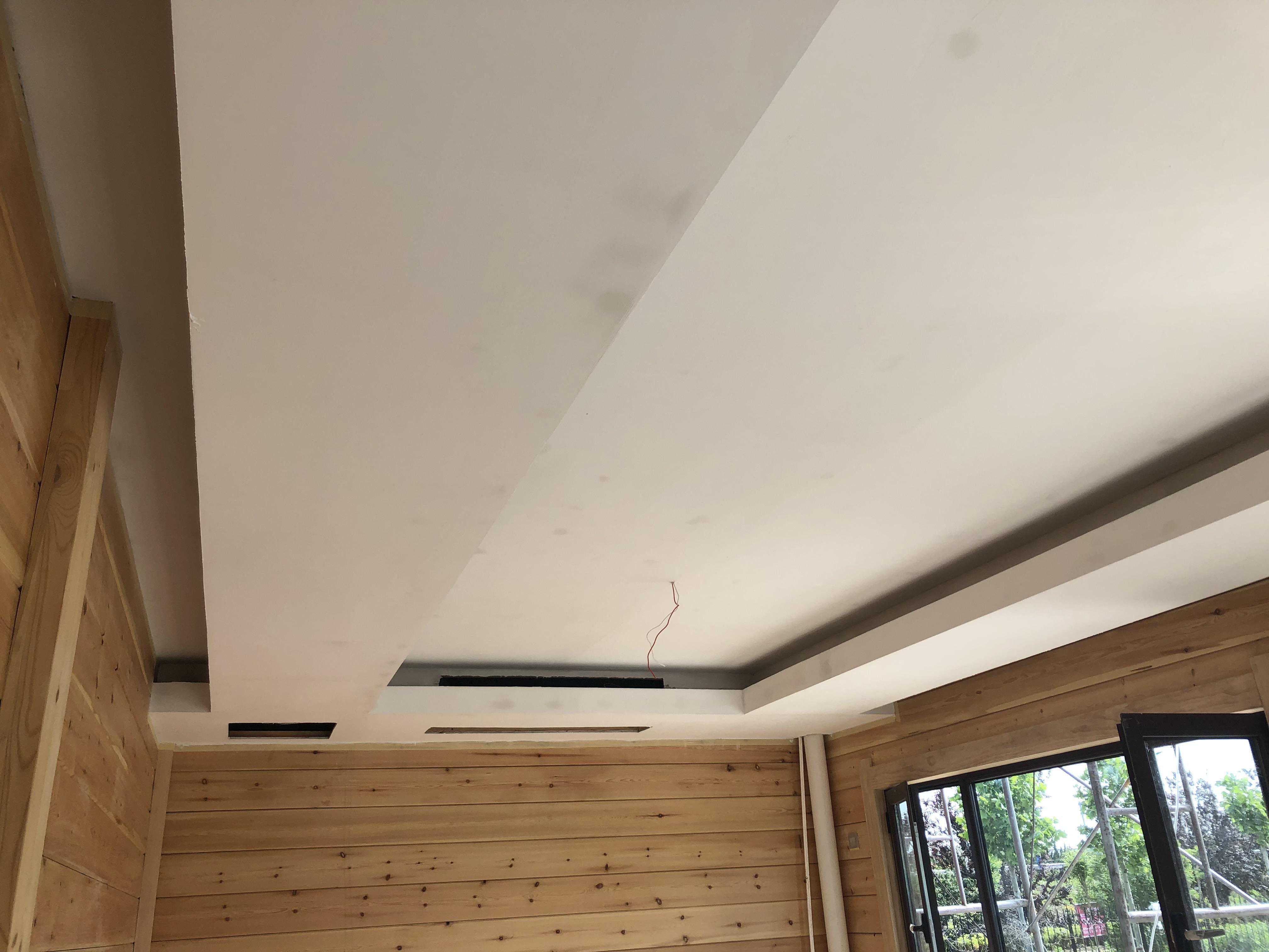 内墙天棚安装完毕,墙体交锋处压条盖住