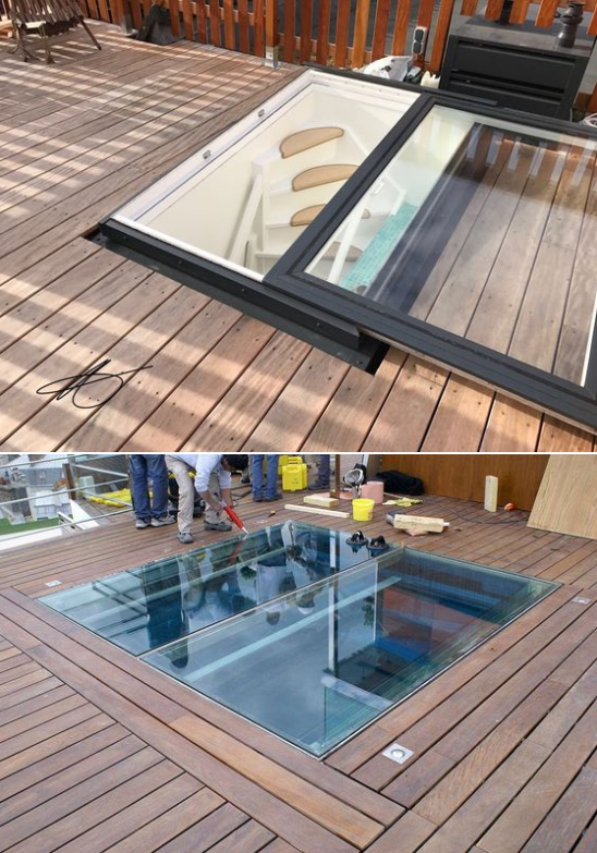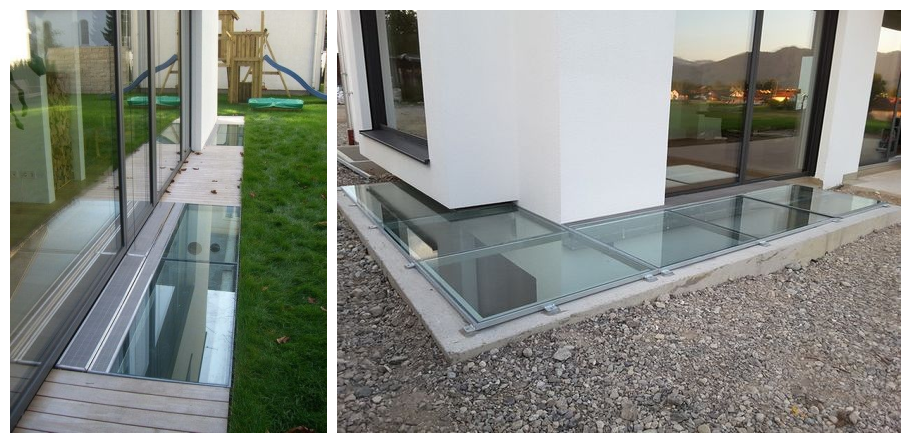 其实像是天井、地下室这些空间,为了引进自然光线,或者说是在保证光源不受影响的情况,避免灌溉和防尘,第一首先也是装个玻璃顶。