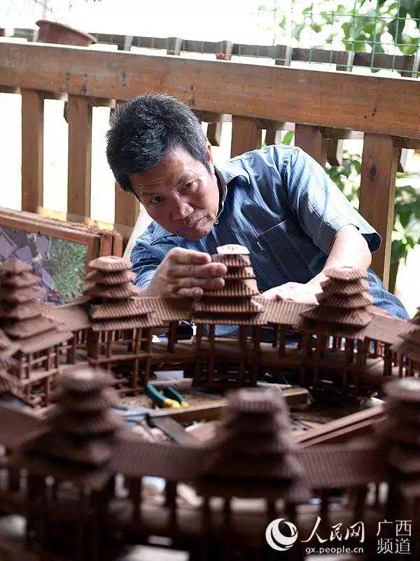国家级侗族木构建筑营造技艺“非遗”传承人杨似玉设计制作了“环形楼桥”模型。
