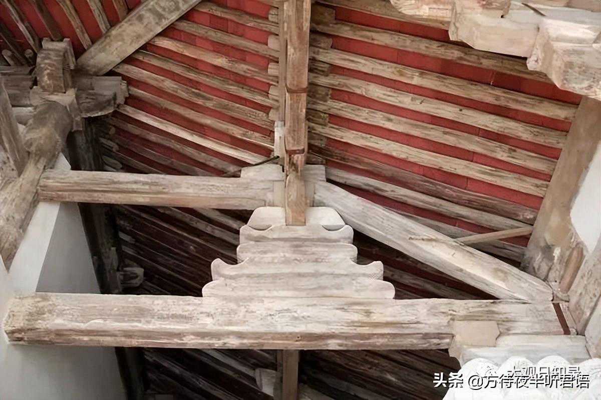 这是目前中国现存最早的斜栱实例,呈45°,建于北宋天圣八年(公元1030年)。个人观点,认为转角铺作的角华栱不算真正的斜栱。