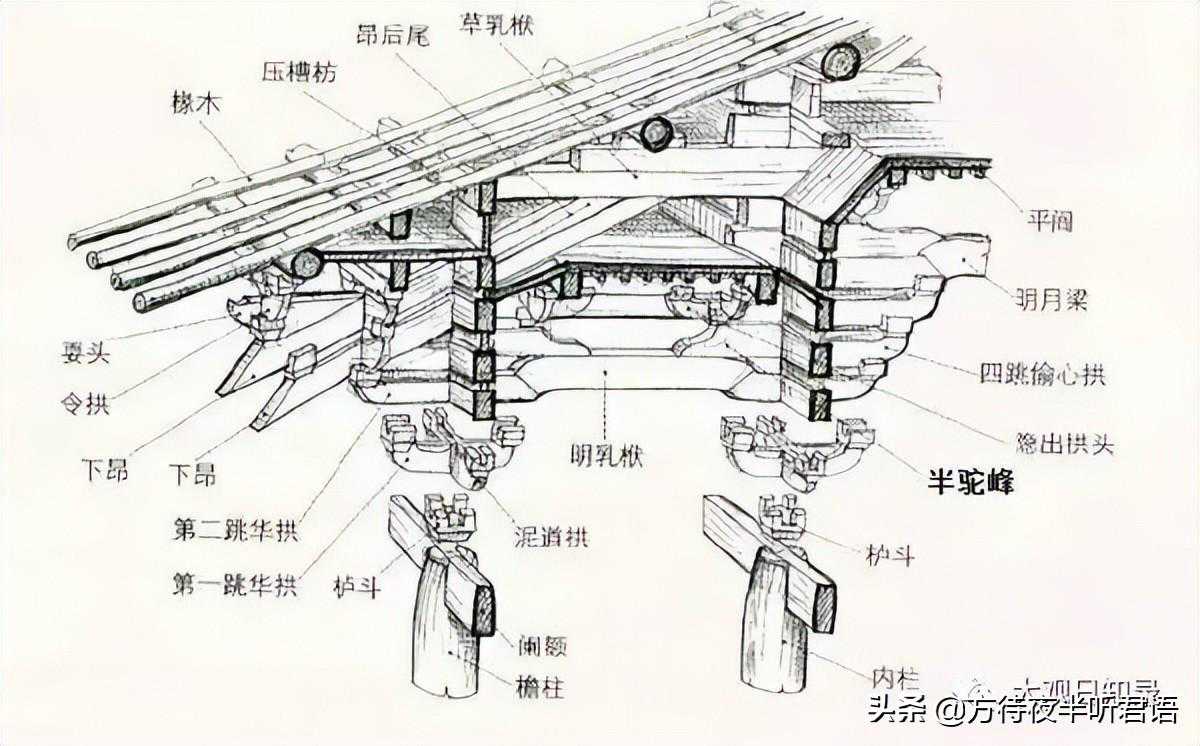 山西五台佛光寺东大殿梁架示意图(唐)之半驼峰