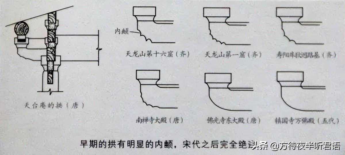 斗栱的栱上有内䫜则表示斗栱的年代不会晚,至迟不会晚于宋。䫜(凹的异体字,音义同)。