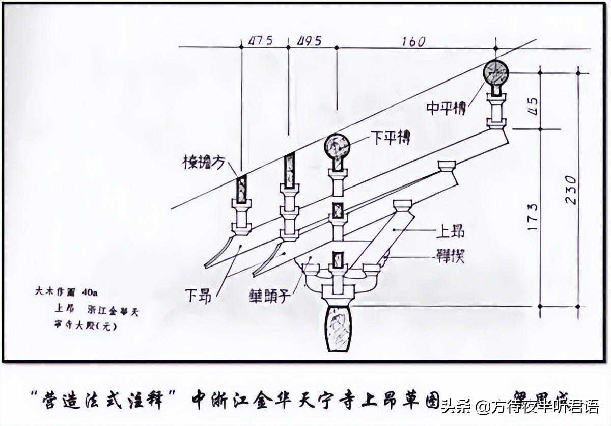 [18]华头子,为檐内(里转)斗栱的华栱外伸出的头子,砍削成斜向,上承昂的构件。