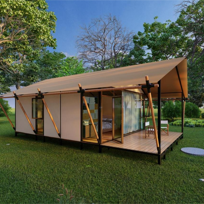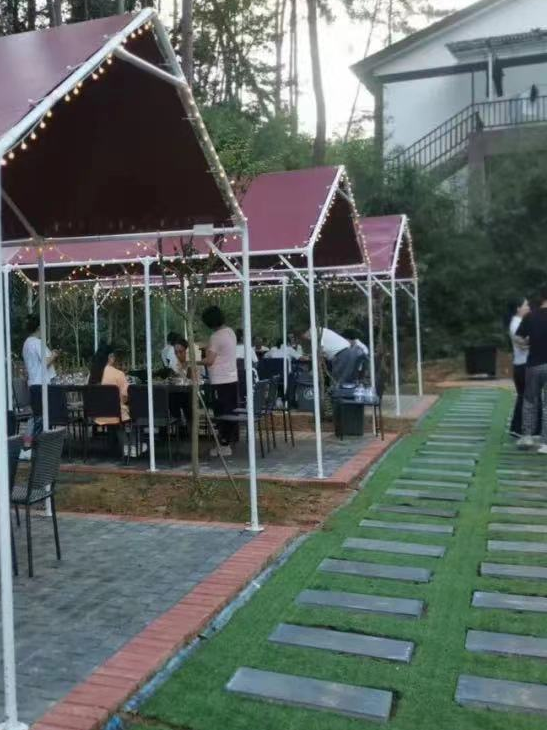 坐在帐篷小院里呼吸绿色的氧气