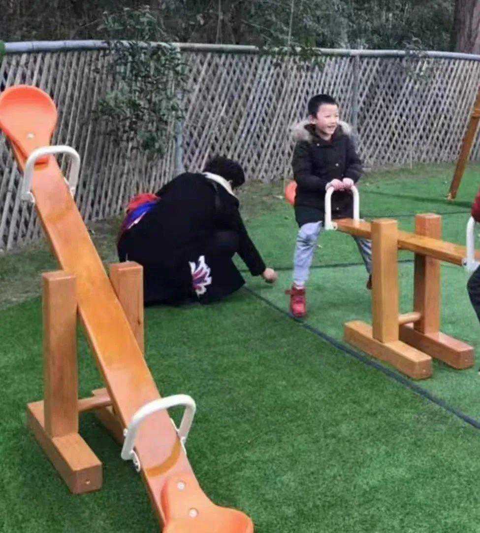 跷跷板上下的孩童嬉戏、笑声清脆