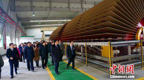 大亚集团董事局主席陈晓龙引领参加庆典仪式的嘉宾参观生产线