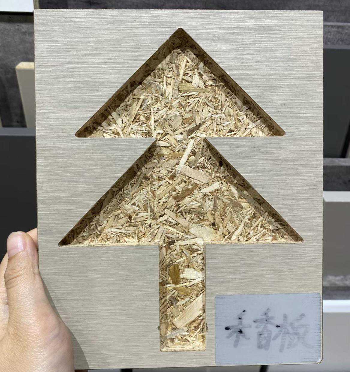 颗粒板选用的杂木边角料或者小径木材。两边使用细密木纤维,中间夹长质木纤维,施加胶粘剂后在热力和压力作用下胶合成的人造板,是以刨花板的工艺生产的板材。