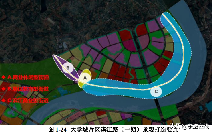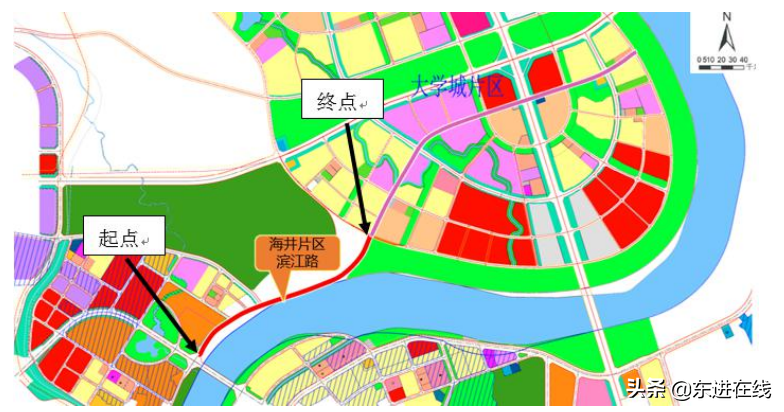 本项目规划建设包括了市政道路(含大学城片区滨江路一期,海井片区滨江路)、大学城片区滨江公园(一期)两大部分。