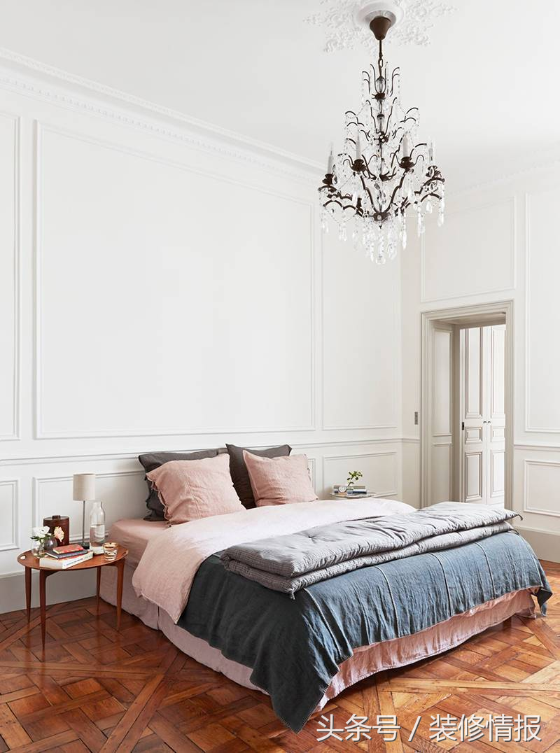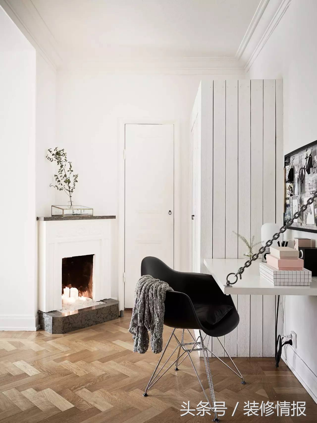 如果是小户型,或者采光不太好,那么浅色地板就是首选。再配上白墙,让空间更亮、显得不那么拥挤。选择浅色地板,要避免过于繁复的软装,家具选择简洁、细腿的北欧、MUJI风格,整体配色使用黑、白、灰和原木,适当搭配几件彩色单品提亮空间。