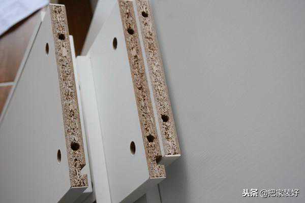 刨花板:刨花板又叫实木颗粒板,是由木材或其他木质纤维素材料制成的碎料,再施加胶黏剂后在热力和压力作用下胶合成的人造板。由于刨花板的木纤维较大,所以泡水后膨胀率也不高,这种刨花板首选国外进口的爱格板、克诺斯邦板,相对会环保一些,如果是国产的颗粒板,也要注意甲醛问题哦。