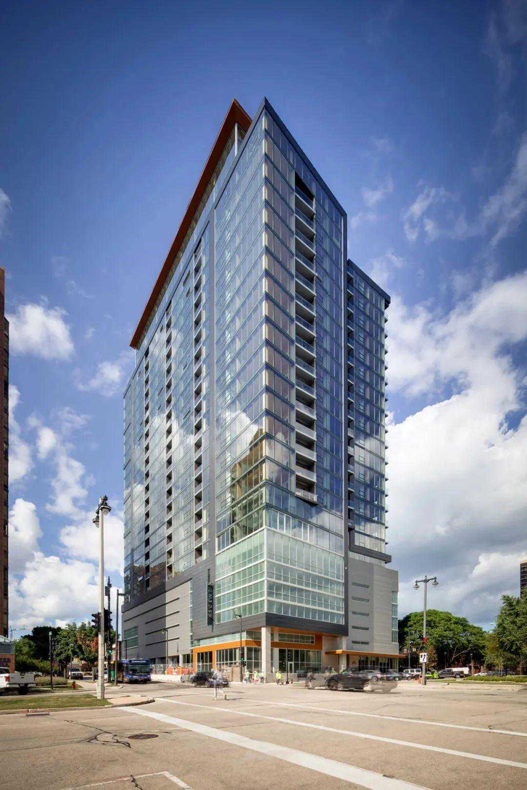 Ascent位于密尔沃基市中心,其底部有一个六层的裙楼,里面有零售和便利空间,以及停车场和大堂。