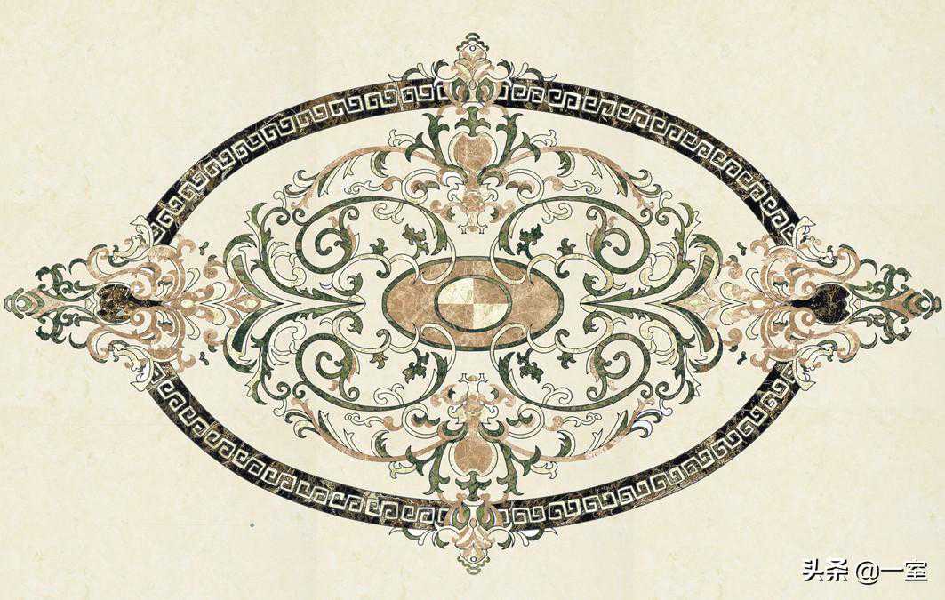 除了图案以外,拼花的色彩、材质选择搭配也很重要,同样的图案,色彩上的变化会改变整体的效果。同时,当拼花一样,搭配不一样,最后呈现效果也不一样。