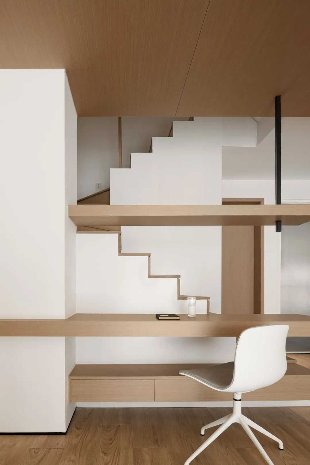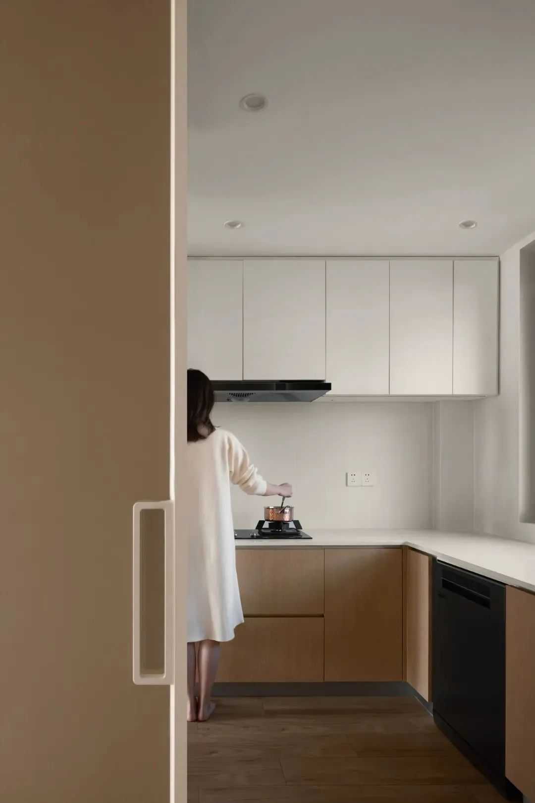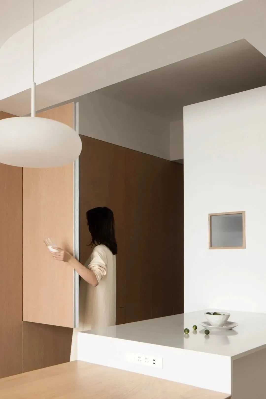 一个人,一杯茶,静于心,乐于品,原木柜细腻的纹理,暖色木质地板,惬缓温婉在柔和的场景里生发,让空间充斥着自由的气息和生长的温度。