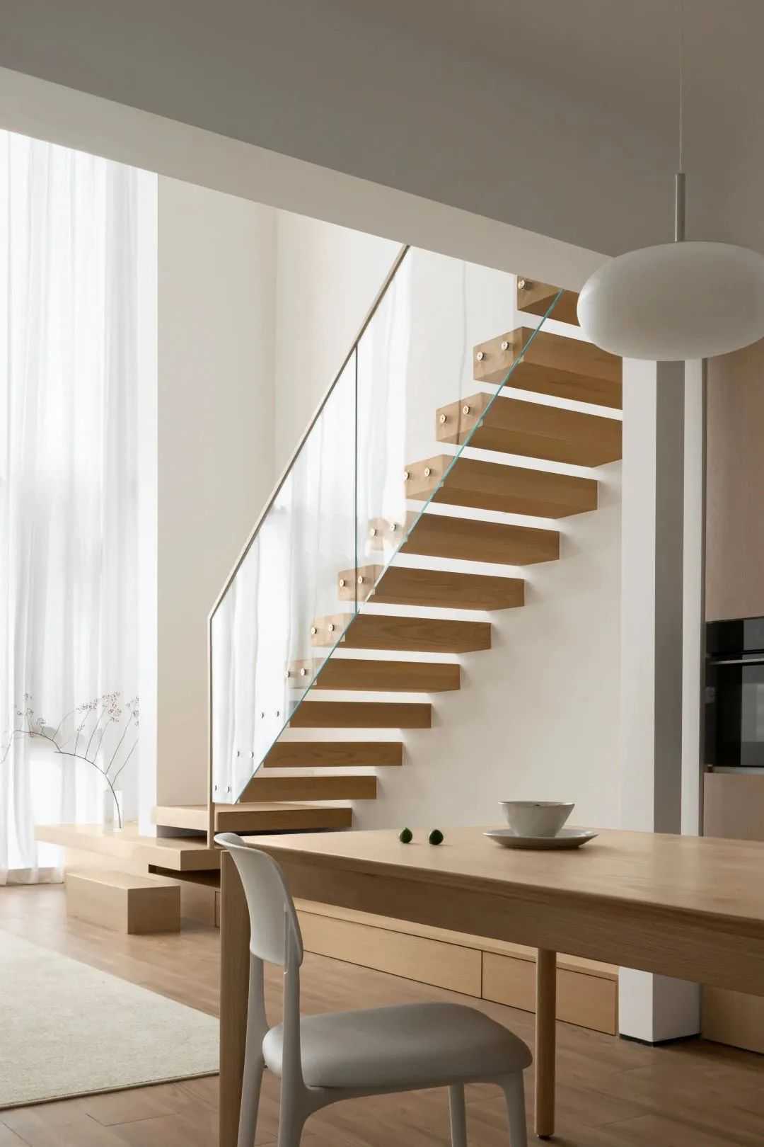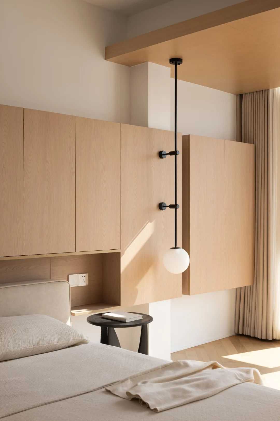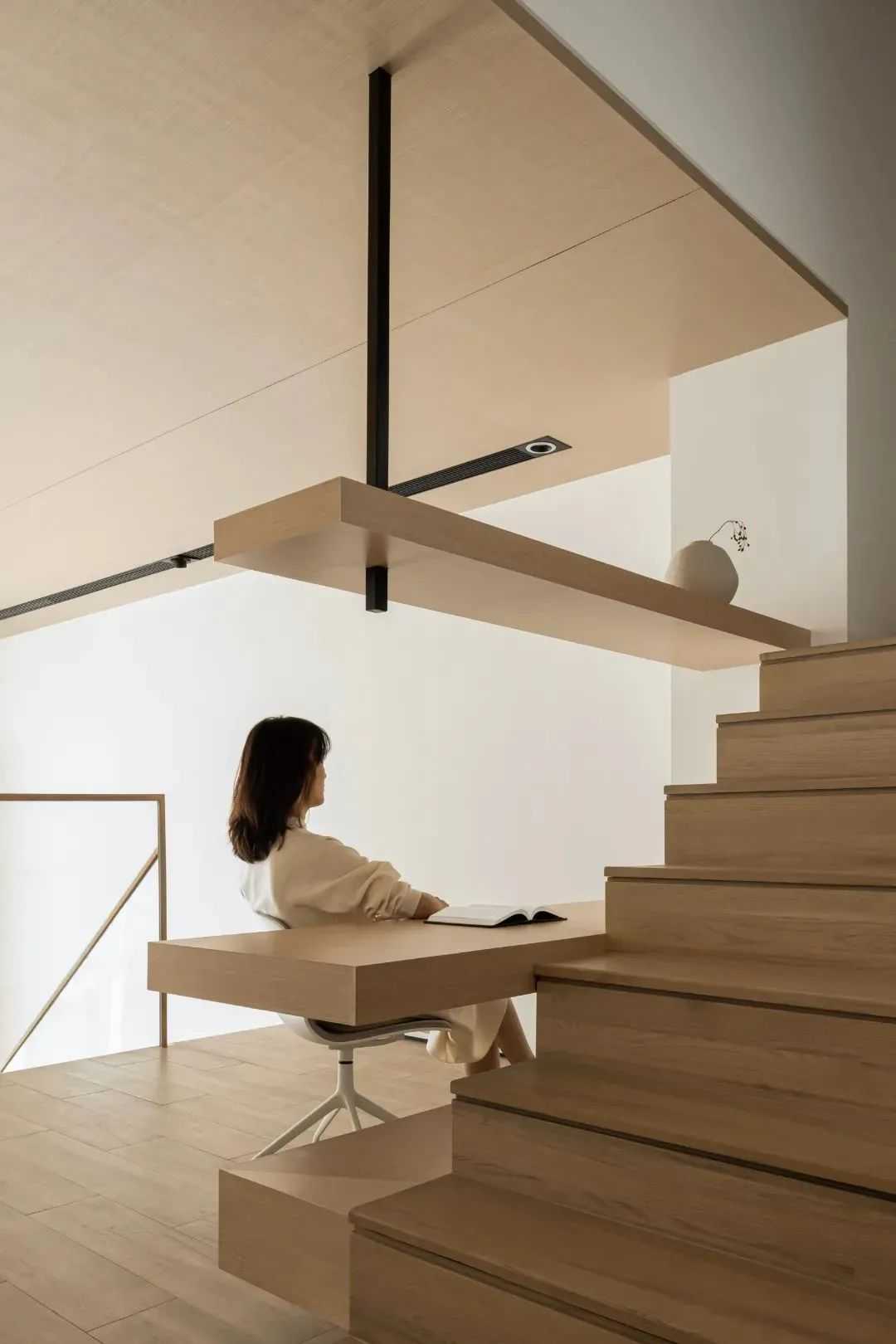 一个人,一杯茶,静于心,乐于品,原木柜细腻的纹理,暖色木质地板,惬缓温婉在柔和的场景里生发,让空间充斥着自由的气息和生长的温度。