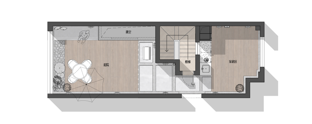 在这个建面约180㎡的四层叠墅里,单层面积60㎡不到的空间如何满足各项功能和空间改善做到平衡,是这个项目出发的源点。
