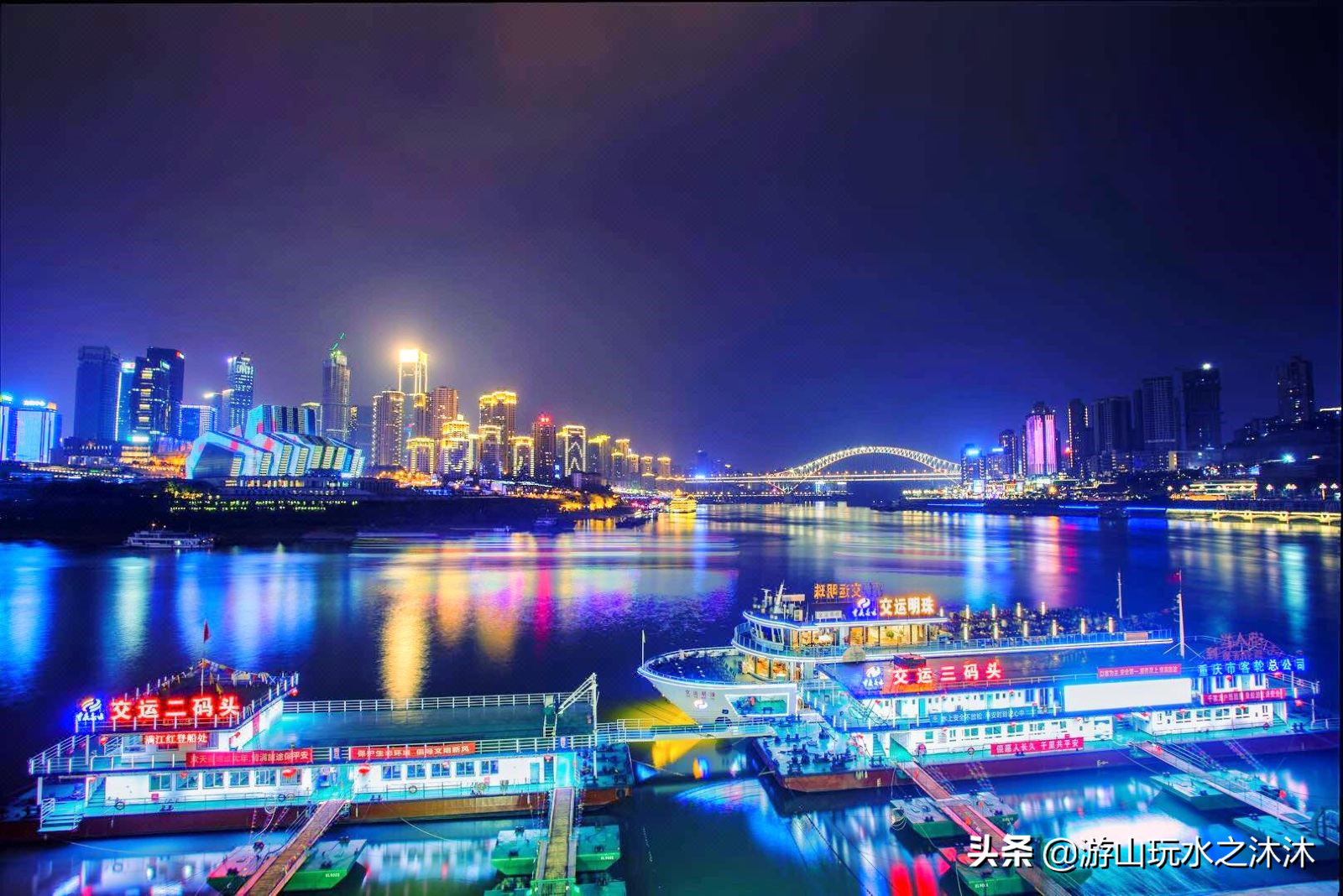 朝天门的夜景也是非常美的,晚上灯光都开了,特别漂亮,眼前是灯火辉煌的码头,还有花枝招展的游船穿梭来去。