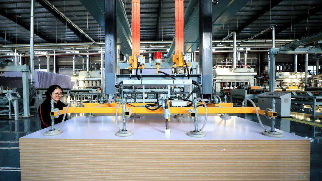 规模巨大的厂房、先进的生产设备、精致的产品……走进位于沭阳县贤官乡村振兴产业园的江苏狄米特尔装饰材料有限公司,现代化的生产场景十分壮观。