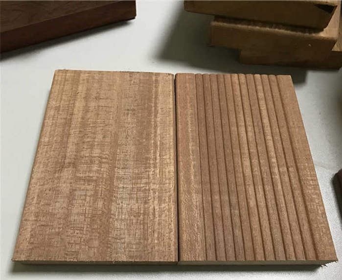 识别要点:银口木外皮黄褐色,具细龟裂纹。内皮黄白色,斜切面有褐色细条纹。与朴开拉相比,其弦切面花纹更细腻,颜色更偏黄一些,管孔中沉积物更丰富一些。