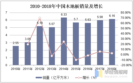 随着国内房地产发展进入发展平稳期,我国木地板行业逐渐开始稳定发展,据统计,2018年中国木地板销量为6.16亿平方米,同比增长3%。