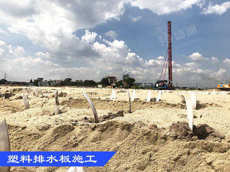 将带状的塑料板由专用插板机插入地基中,然后路基填土加荷时,使地下孔隙水经塑料板芯从沟槽排出,从而加速固结,提高地基承载力,实质上是以塑料排水取代砂井。其结构由塑料芯板(聚乙烯或聚氯乙烯)和外包滤膜(涤纶或合成纤维无纺布)组成,这种方法施工速度快、质量稳定经济省力,施工时对地基的扰动小,透水性较好。此法已渐渐得到大范围推广及使用。