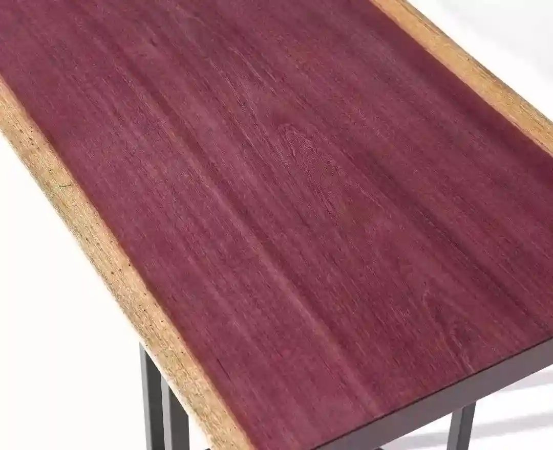紫芯苏木也被称作紫罗兰、紫心木,属于常绿大乔木,树干通直,主要分布于巴西、委内瑞拉、苏里南等地。它的芯、边材也区别明显,芯材呈紫红褐色,边材则是黄白色,生长年轮明显。