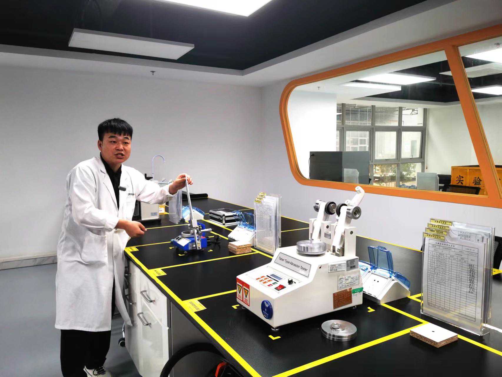 在欧派集团实验室工程师袁堂丰的带领下,南方+记者沿路参观了实验室原材料物理、化学及成品可靠性三大测试区,并现场观看了板材、五金、PVC等原材料的精品检测项目。