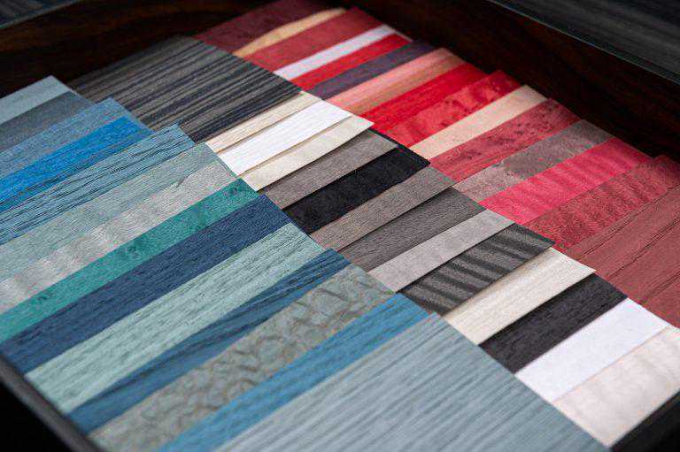 5、染色:漂白后的木皮清洗干净,再根据所仿的珍贵树种色调,对木皮进行染色处理。