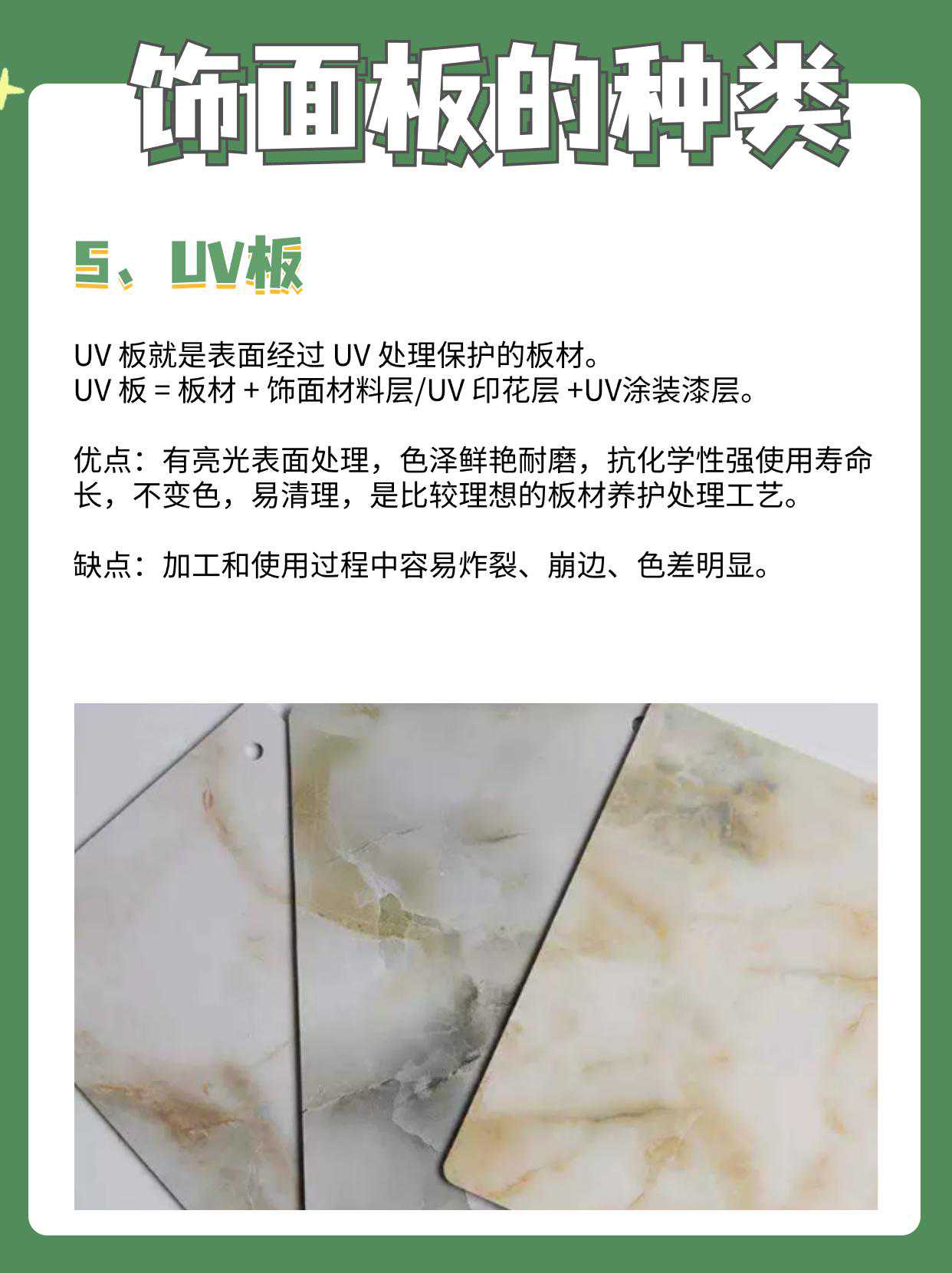 UV板是比较理想的板材养护处理工艺,但是也是比较危险的一款材料,容易发生炸裂、崩边等情况。