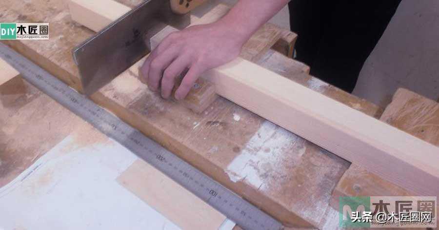 有了这样的设计草图和尺寸说明之后,再按设计要求下料就显得非常轻松。用手工锯锯切①990*50*50mm二根,②500*50*50mm四根,③520*50*50mm二根。只需要注意开料切割面是否垂直,有无里边爆边等现象即可。