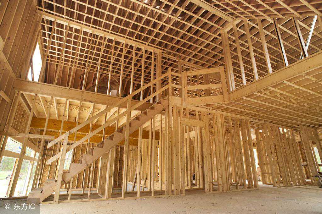 轻型木结构的框架,或者说骨架,包括楼盖搁栅、屋盖椽条、天棚搁栅以及墙体中的墙骨柱等,一般采用规格材。所谓规格材,是指按一定尺寸和模数制成的实心锯材。轻型木结构框架最常用的是截面宽度为38mm的构件,长度一般以600mm为进级单位。